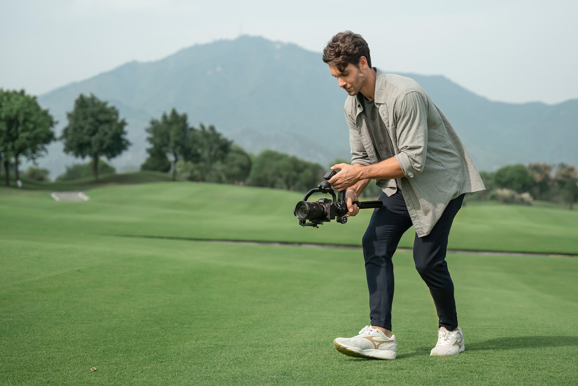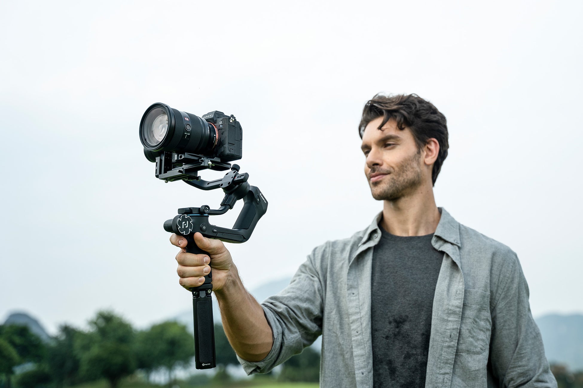 当製品は、一眼レフ・ミラーレスカメラ用のジンバルです。最大ペイロードは2.5kg。世界初となるAIトラッキングモジュールを標準搭載し、1人で撮影する機能を大幅に強化しました。ジェスチャーで被写体の追跡や撮影開始などボタン操作不要で行います。