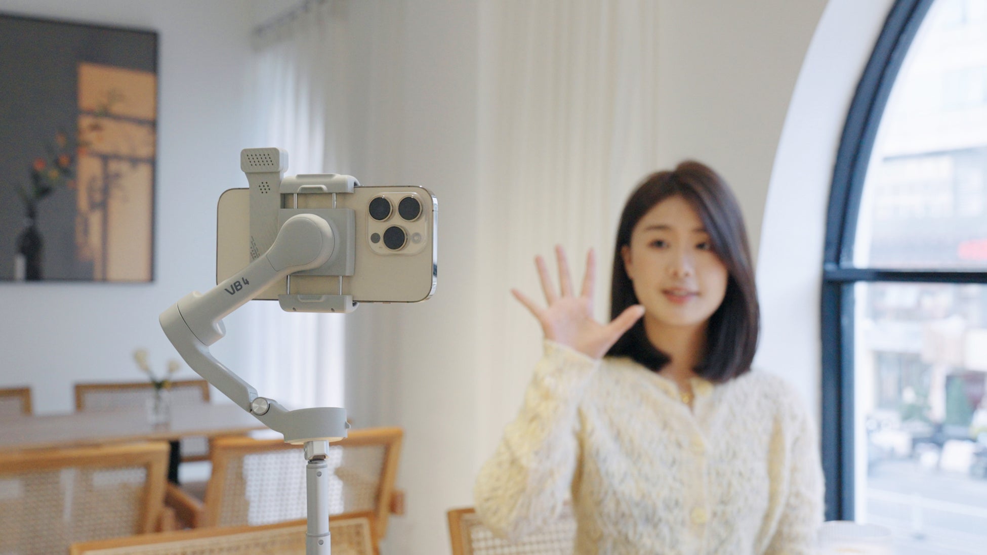 スマートフォン標準カメラやその他カメラアプリ、SNSライブストリーミング、オンライン会議などでも追跡が可能になります。三脚と併用するとこで、ソロ撮影をより快適かつクリエイティブに行えます。